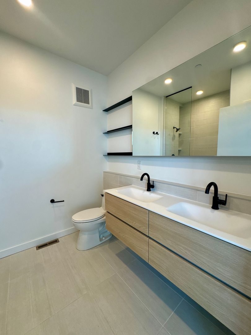 - Two full bedrooms upstairs + 2.5 total bathrooms