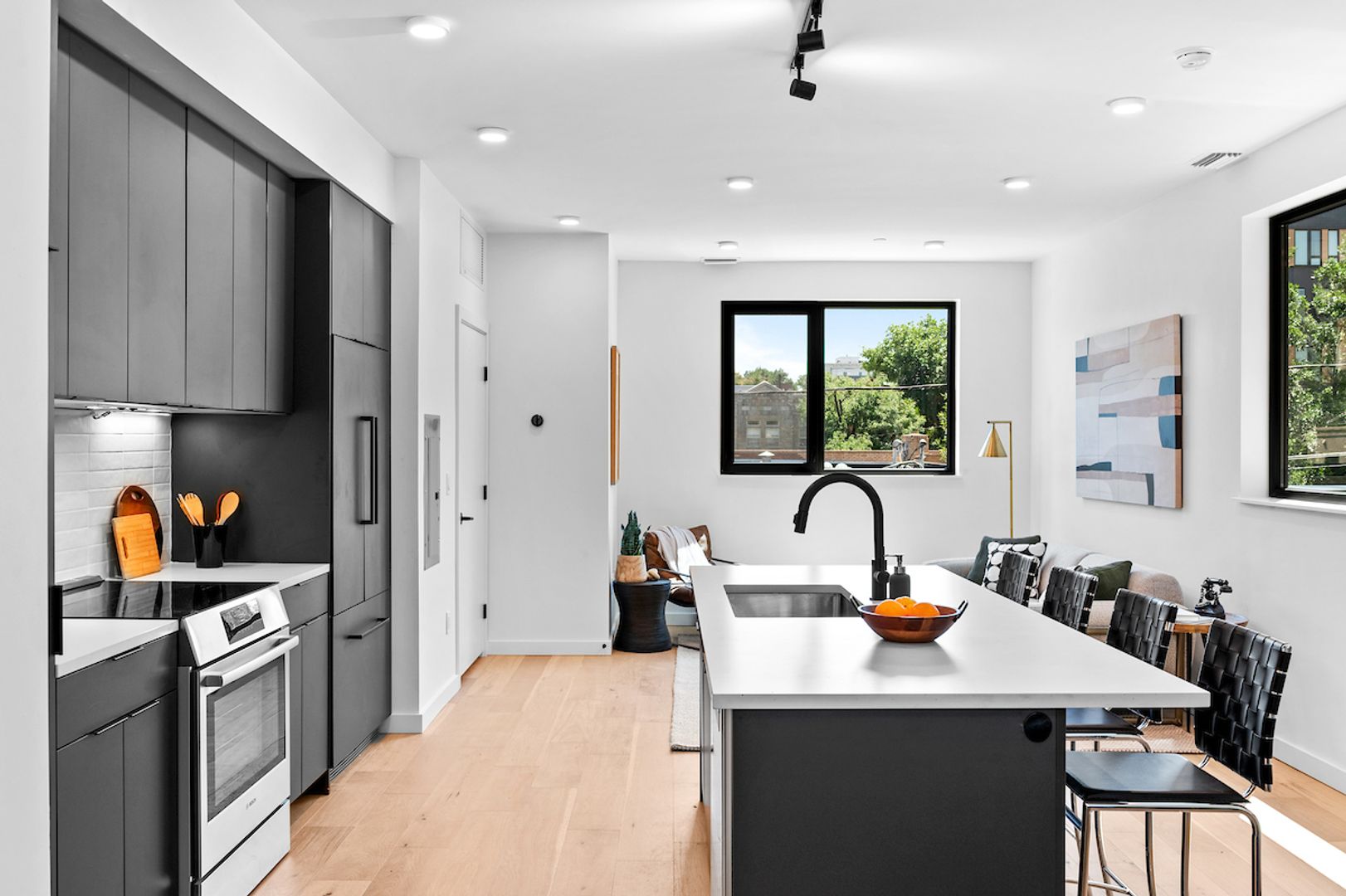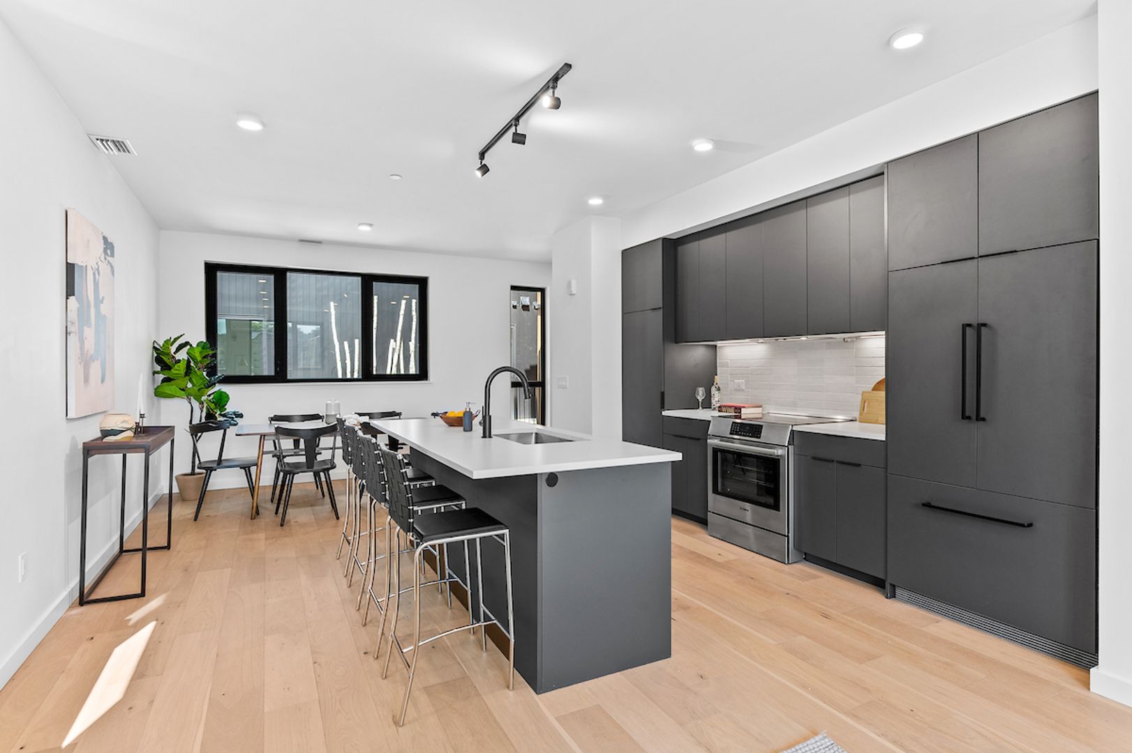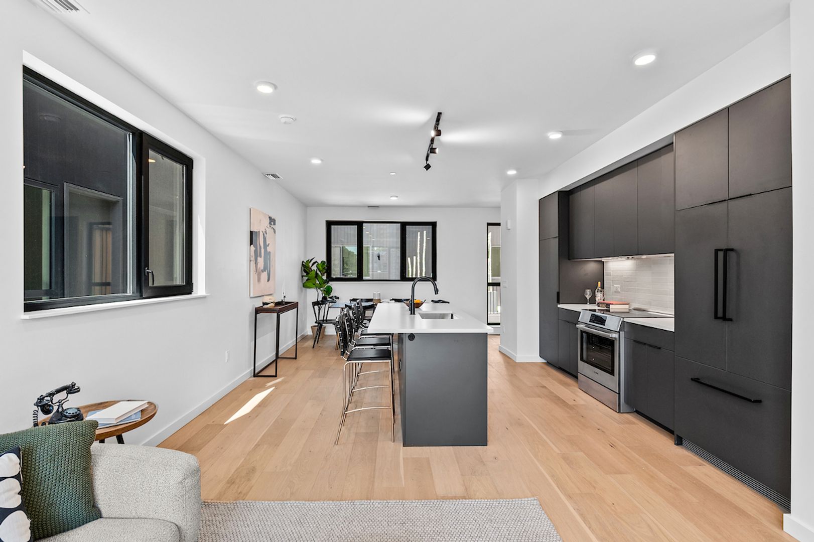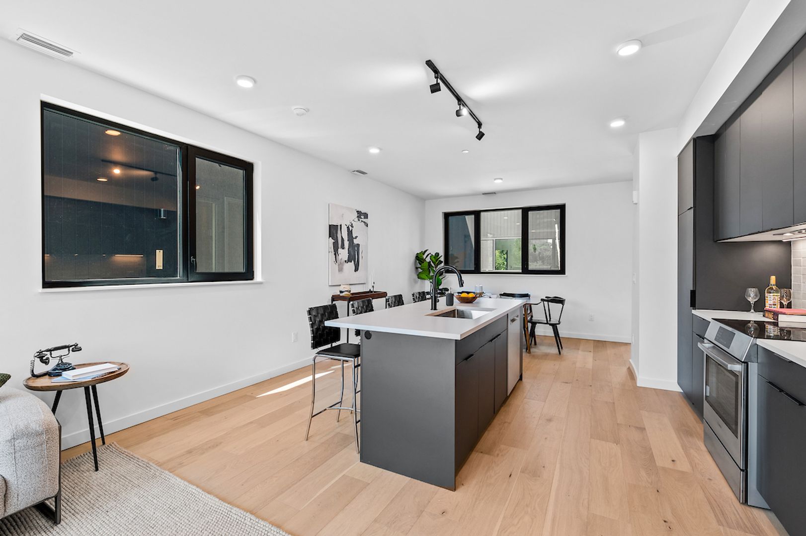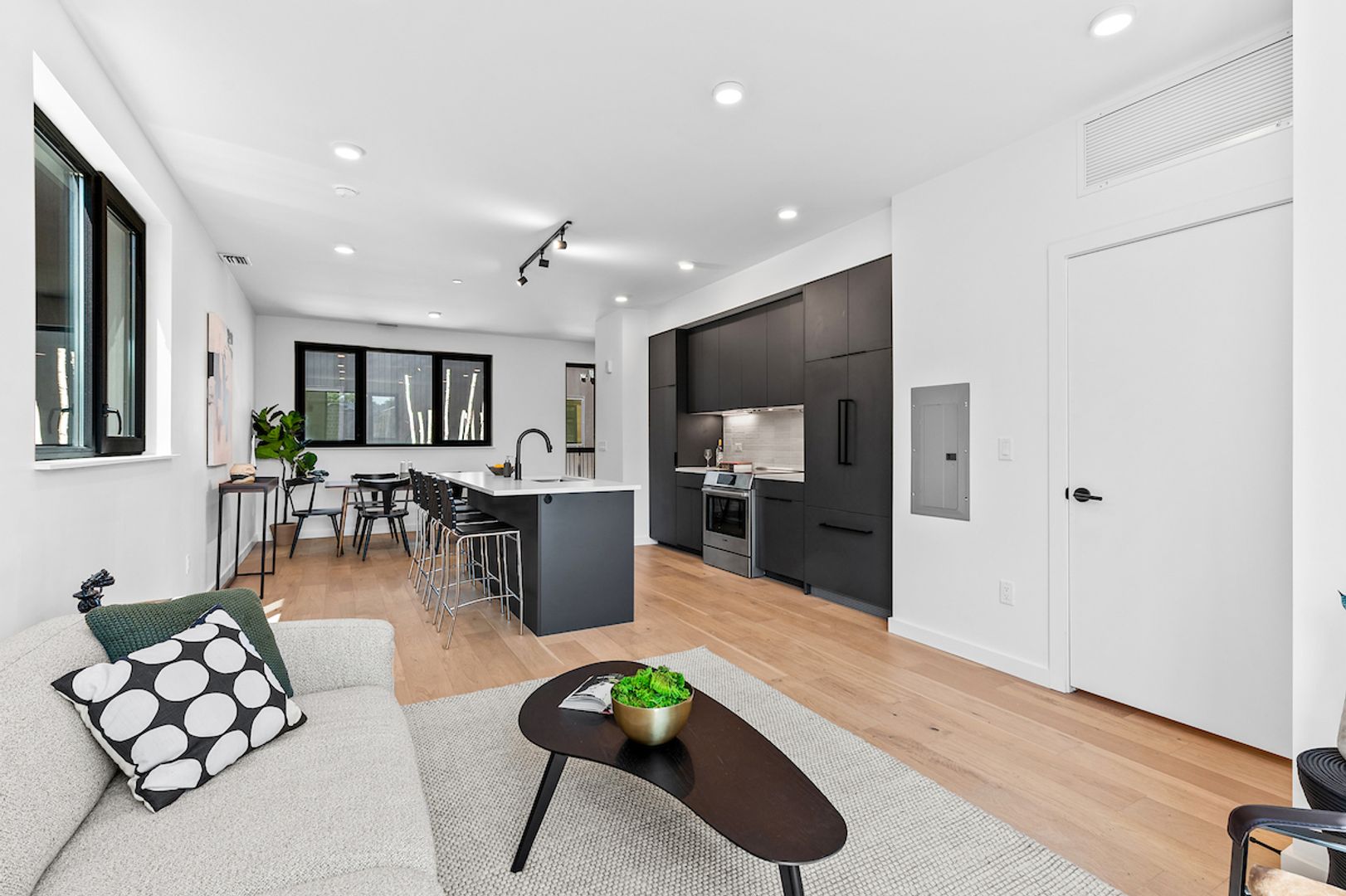 - Large, open living/dining/kitchen area