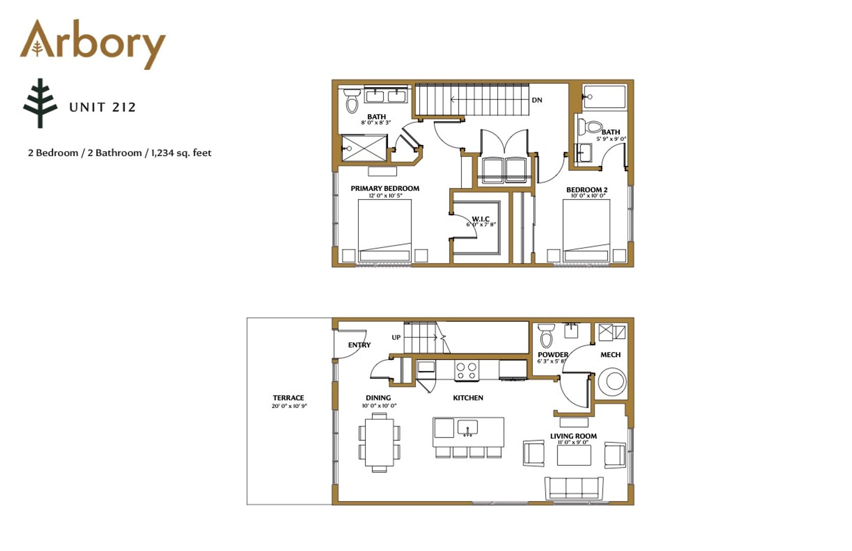 - Two full bedrooms upstairs + 2.5 total bathrooms