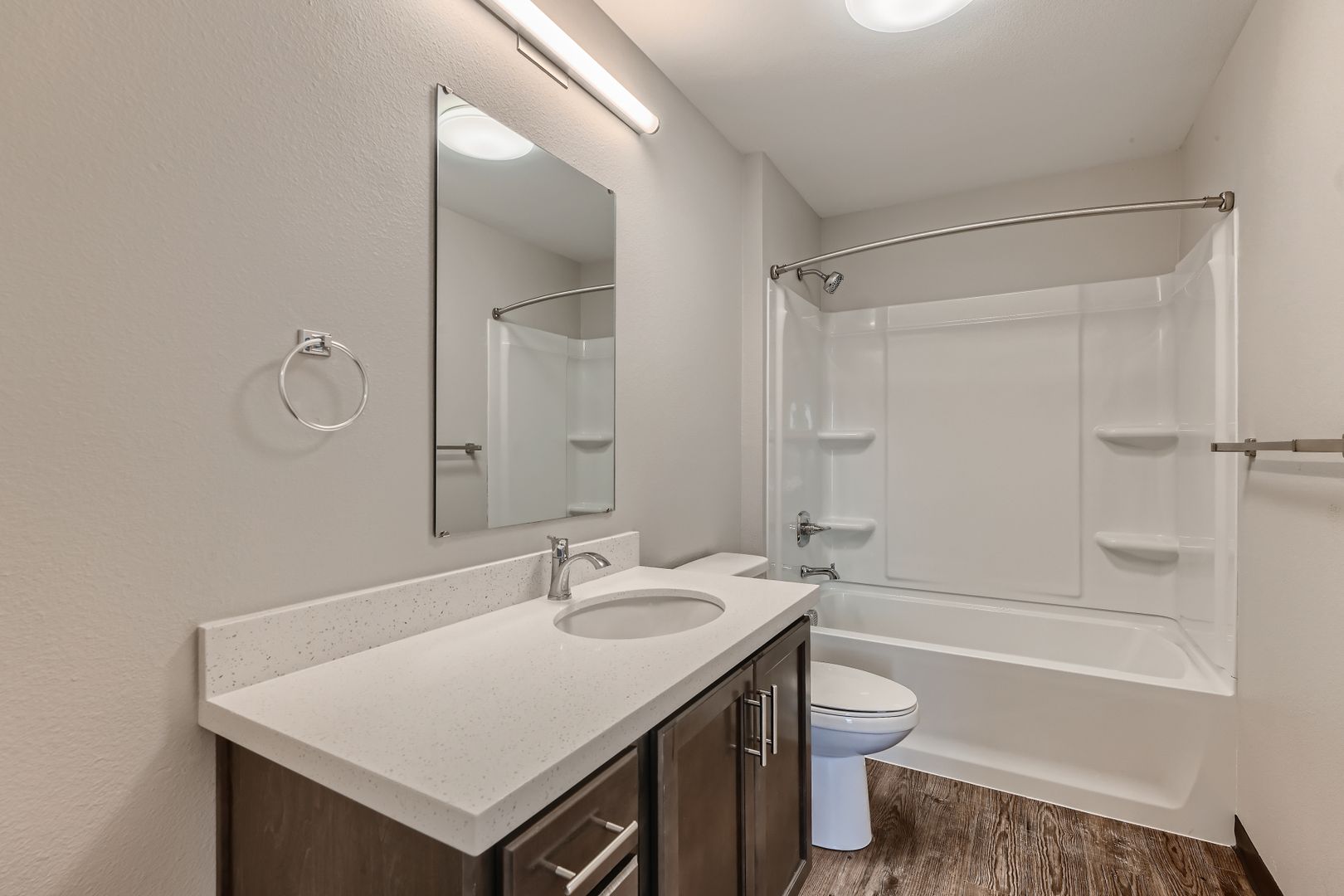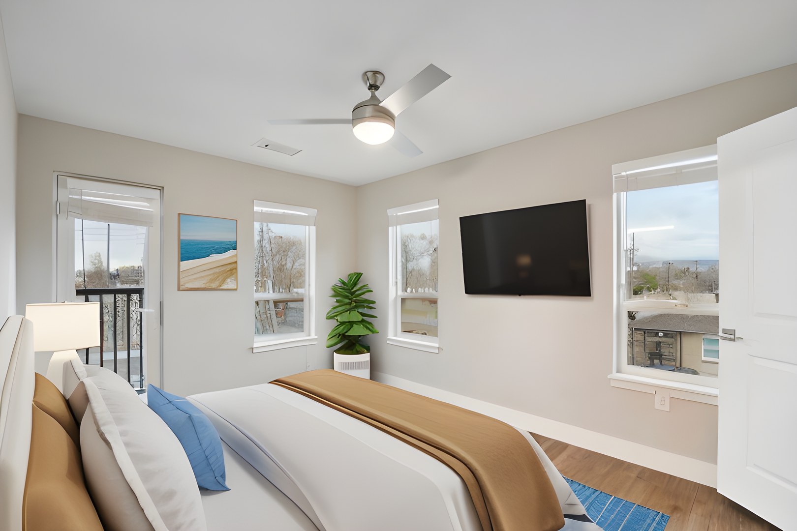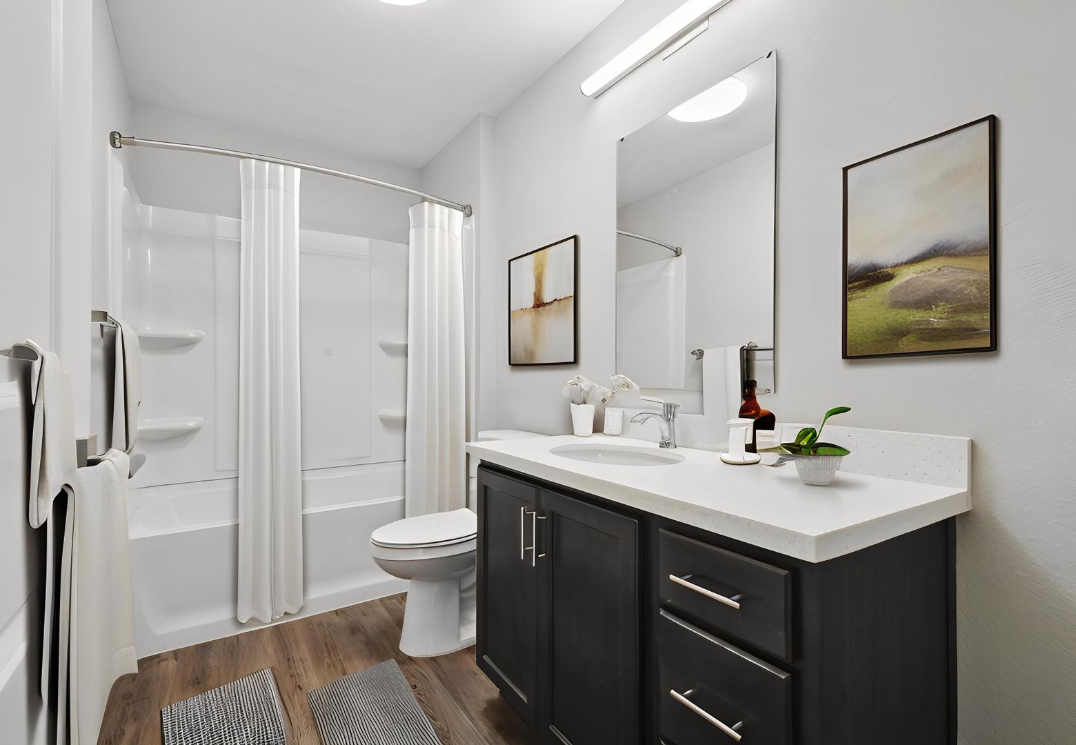Step into modern luxury with stainless steel appliances that adorn the stylish kitchen, complemented by elegant quartz countertops that provide both beauty and functionality.