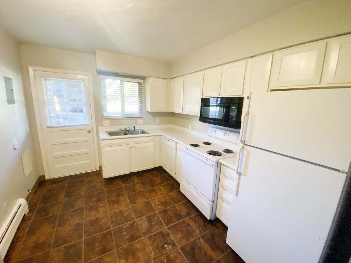 The unit has a formal entry that opens into the living room leading to the dining room, and kitchen. The kitchen has ample cabinet space, off of the living room there is a hallway leading to both bedrooms and a full bathroom.