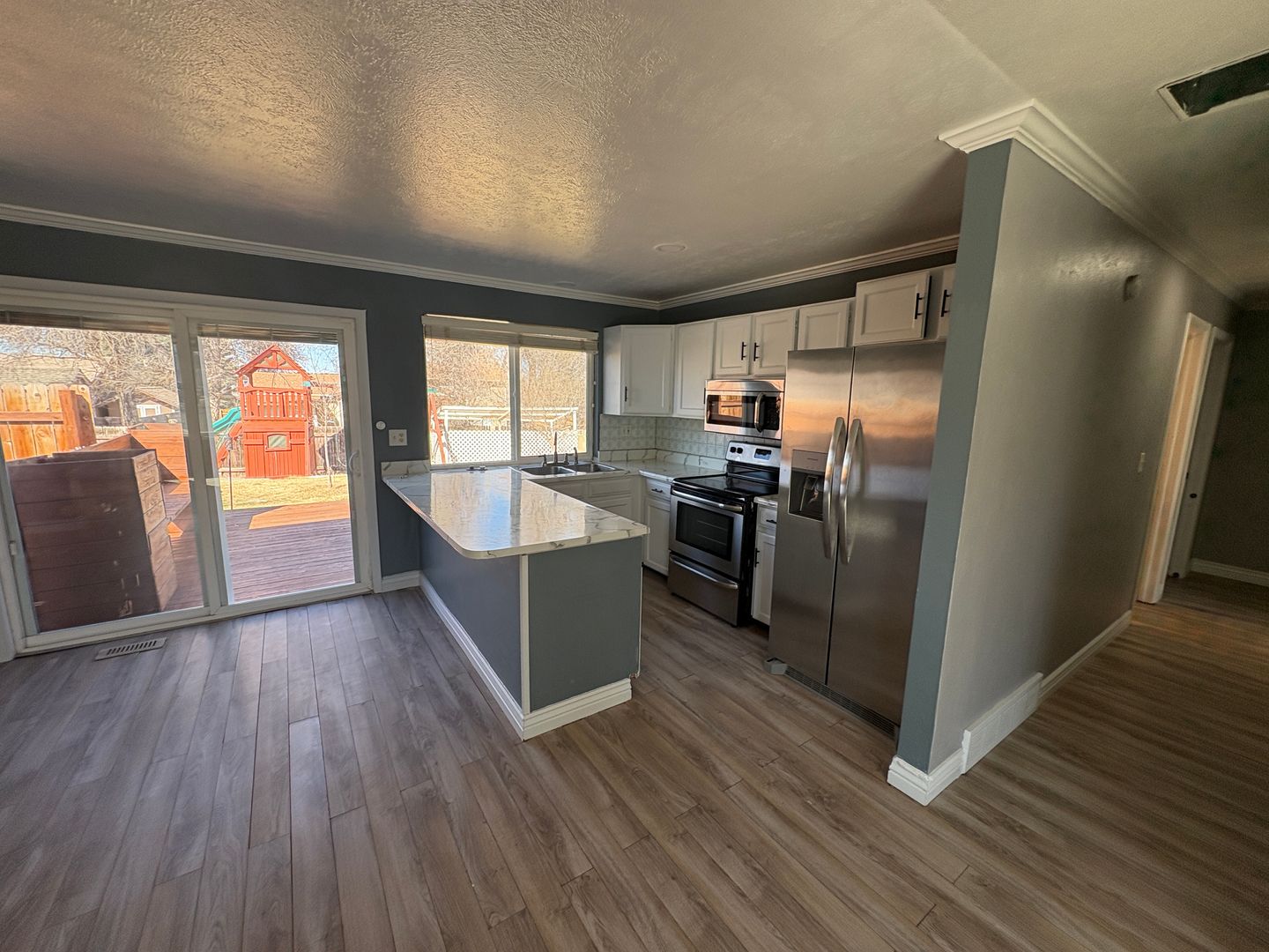 Enjoy the convenience of a 2-car attached garage and a backyard complete with a built-in play structure — perfect for outdoor fun and gatherings.
