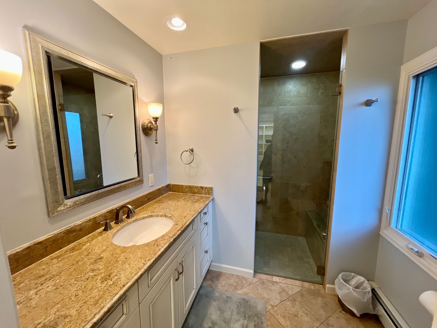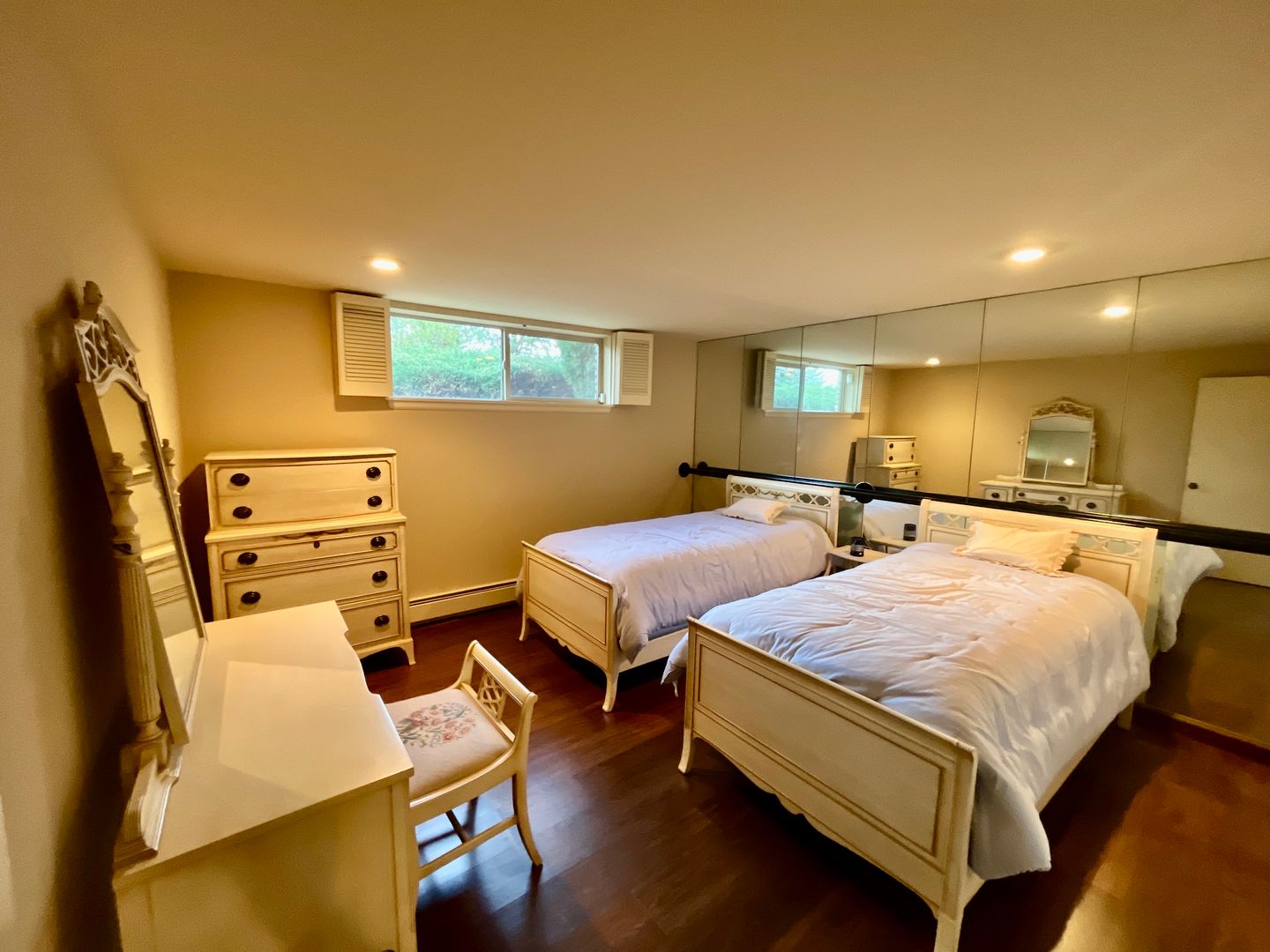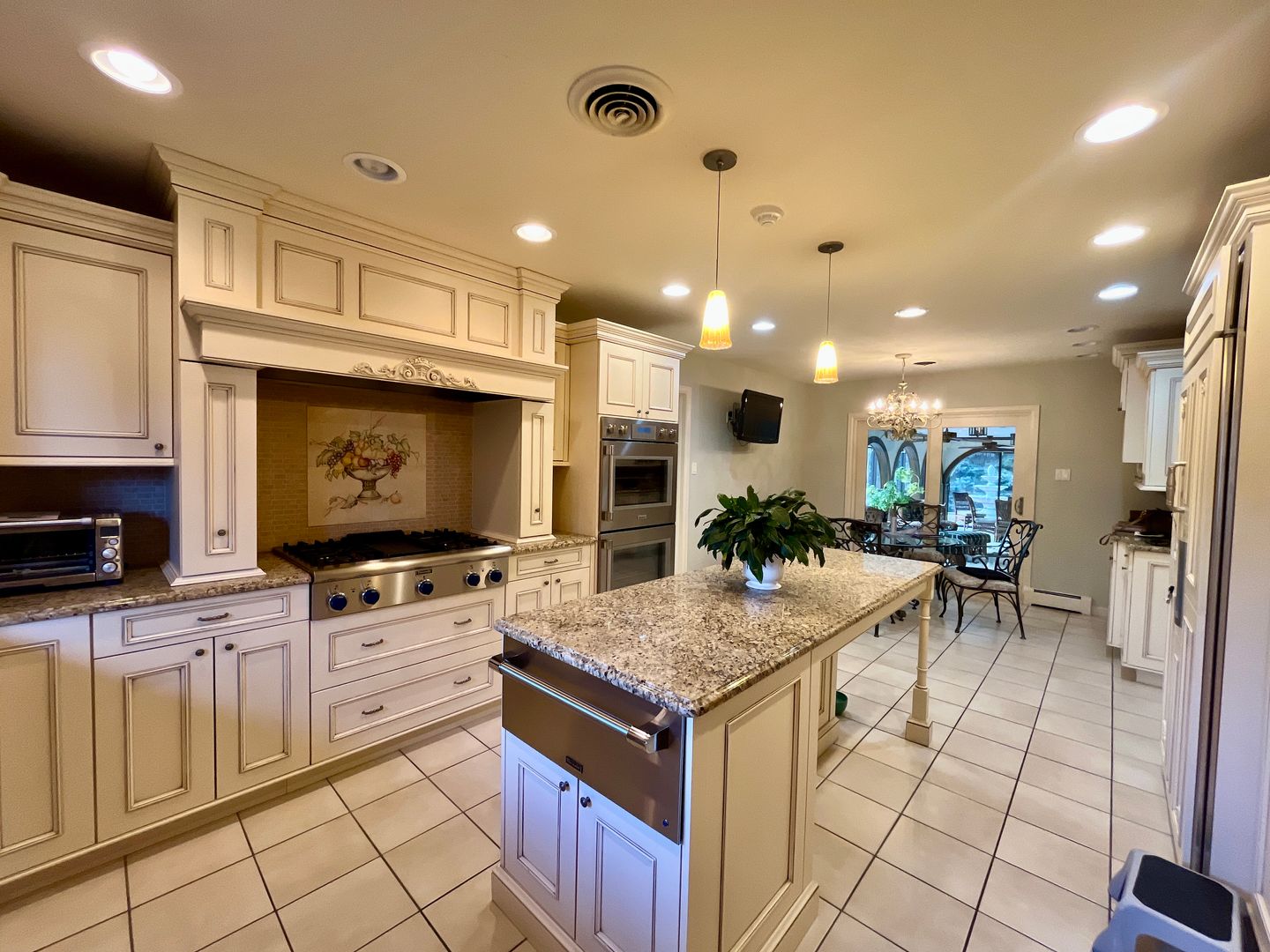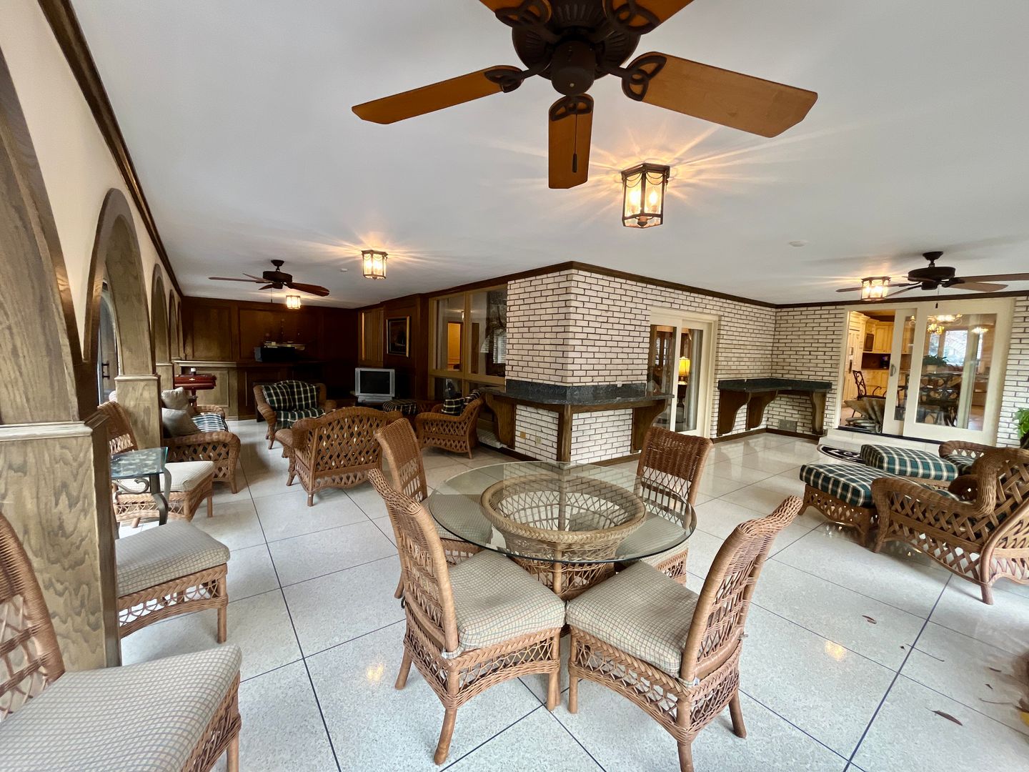 Designed for both everyday comfort and entertaining, the home features a large enclosed sunroom ideal for year-round gatherings, along with a spacious basement entertaining area complete with a bar. The remodeled kitchen includes a center island and an eat-in dining area, providing ample space for cooking and casual meals.